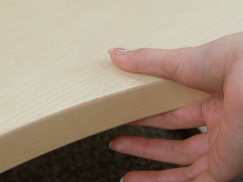 天板には、厚さ25mmのメラミン化粧板を使用。硬度が高く、耐熱性・耐水性・耐候性・耐摩耗性に優れ、傷に強く焦げにくいなどの特長があります。バルテックでは一般販売開始前から12年以上使用していますが、現在でも新品と同様の使い心地を保っています。