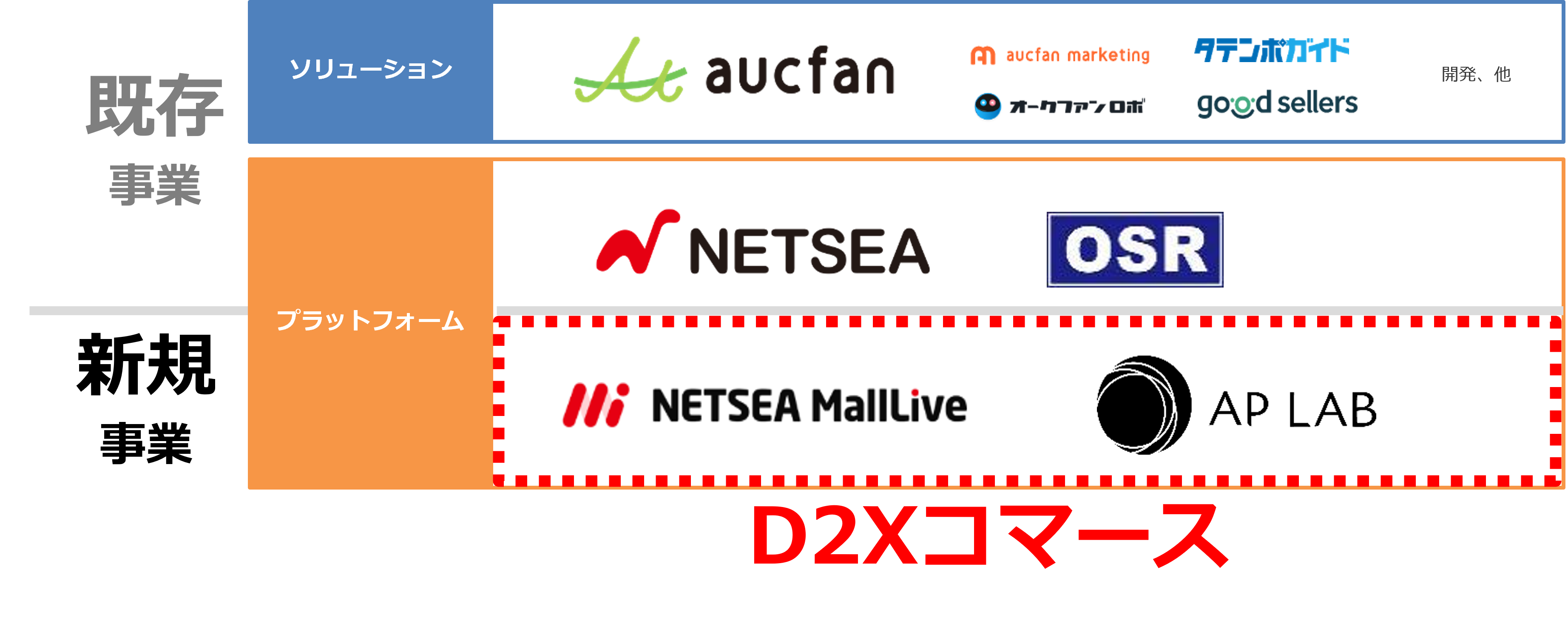現在は、巨大な供給力を持つ中国を起点とした China to Japan 領域へ事業の選択と集中をし、新規事業である OEM 自社プロダクト「AP LAB」やライブコマース事業「NETSEA MallLive」を軸に、D2CのみならずB領域にも商品提供・販路支援を行う 「D2X(Direct to X)コマース」を成長戦略の中核として事業推進しております。