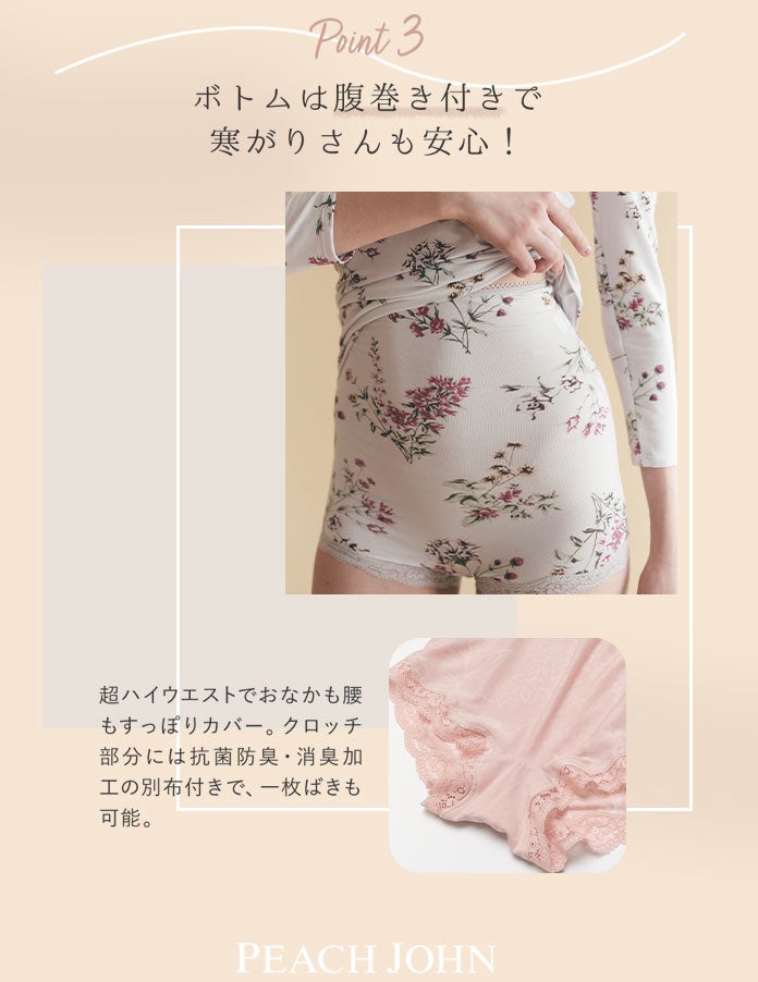 ポイント➂ボトムは腹巻き付きで寒がりさんも安心!