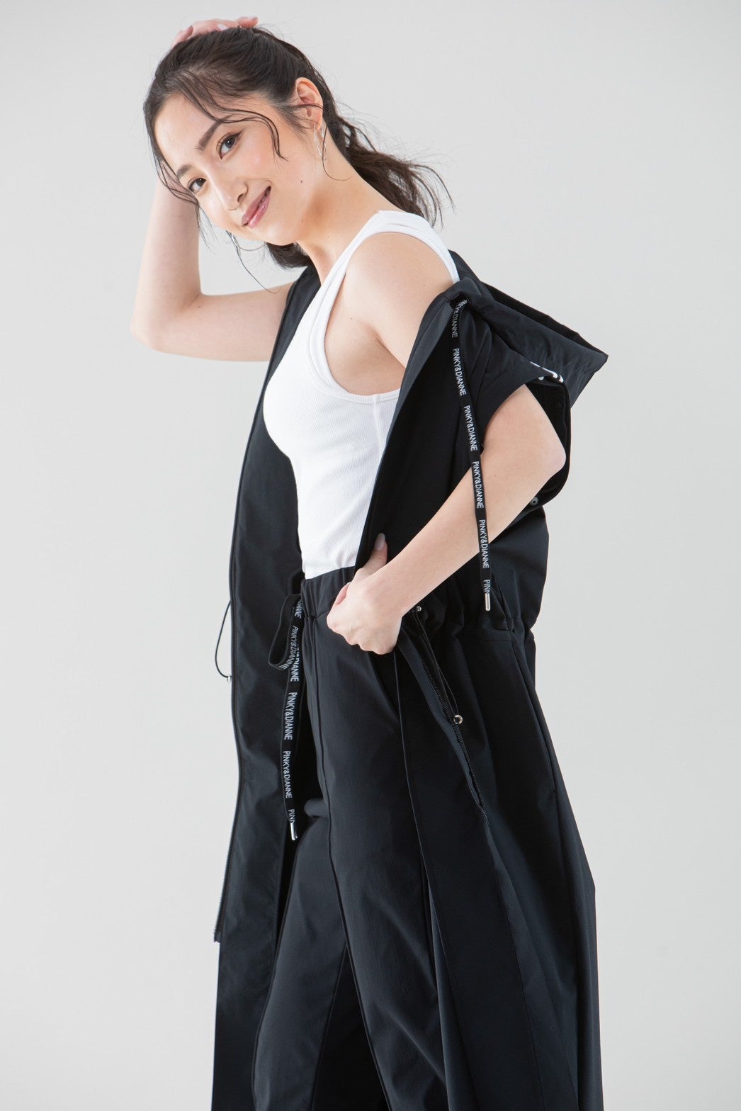 “華やかに艶やかに、大人の女性をより美しく魅せる服”をコンセプトに展開するピンキー&ダイアンは、お仕事シーンや華やかなお出かけ服をメインに多くの大人の女性に寄り添う中で、お客様のライフスタイルにおいては新たな広がりを見せています。スポーツジムなどで自分磨きをする方も増えており、「ゴルフ場で着られる服だけでなく、行き帰りにも使える服が欲しい」や「スポーツシーンをカバーできるウエアがあれば」というお声を多き頂き商品開発をスタート。2021秋冬シーズンにゴルフウエア、2023春夏シーズンからはスポーツウエアをローンチしそれぞれ公式オンラインストアから限定販売となりました。