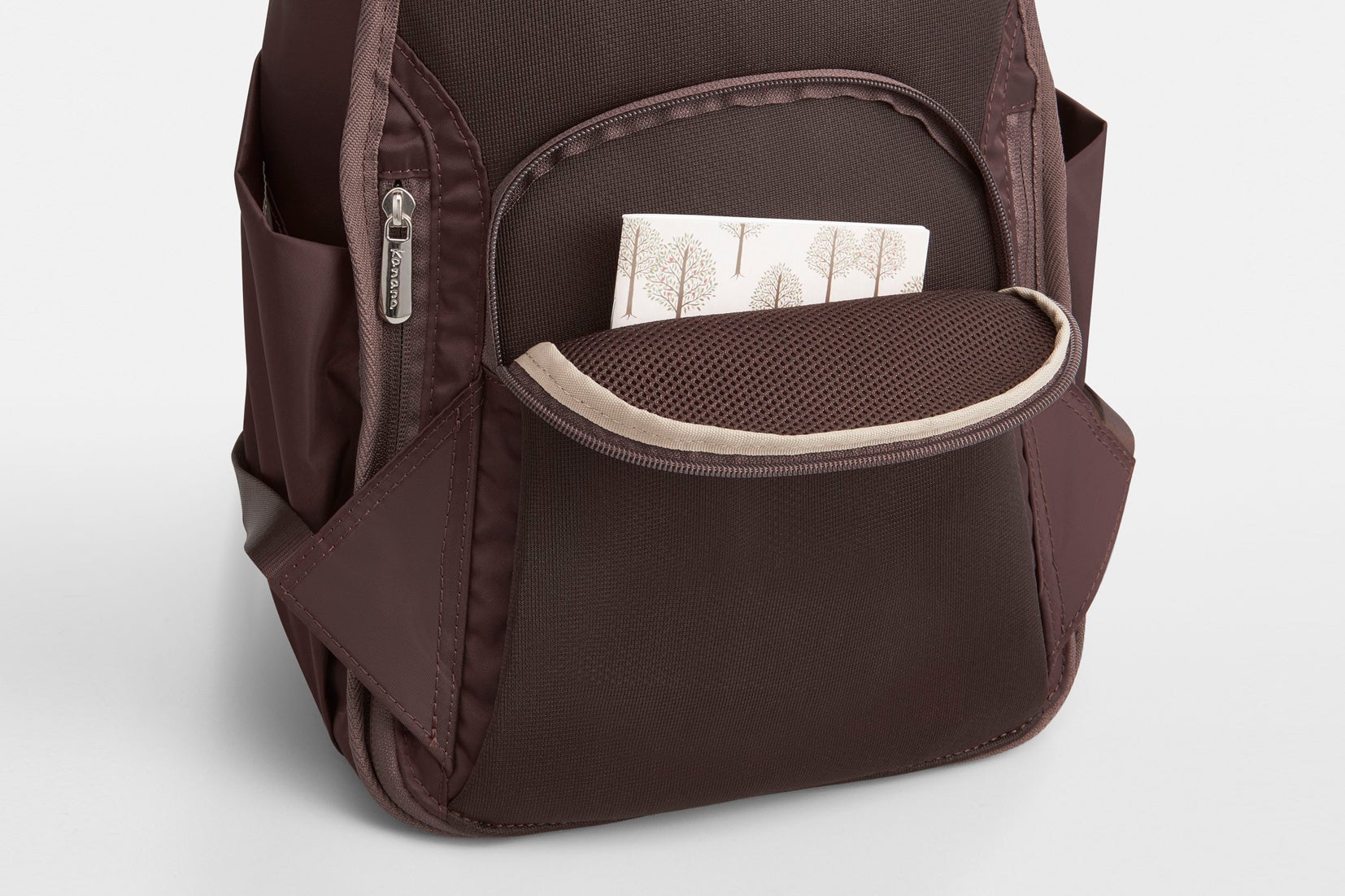 日帰り温泉に必要なアメニティなどを入れておける大きなメッシュルームの他、小物の収納に適したポケットを配置しました。