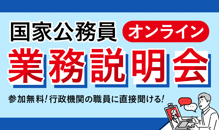 行政機関の採用担当等の職員から直接話が聞ける国家公務員オンライン業務説明会を開催いたします。