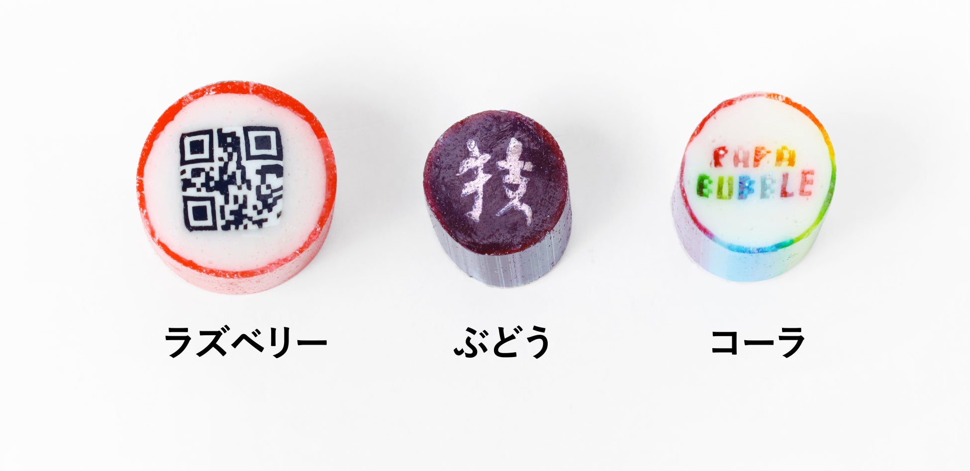 また、ネイビーの無地キャンディには、光に透かすと「技」の文字が浮かび上がる“隠し技”をプラス。さらに、PAPABUBBLEロゴをレインボーのドット絵でデザインし、細部まで遊び心を詰め込みました。
