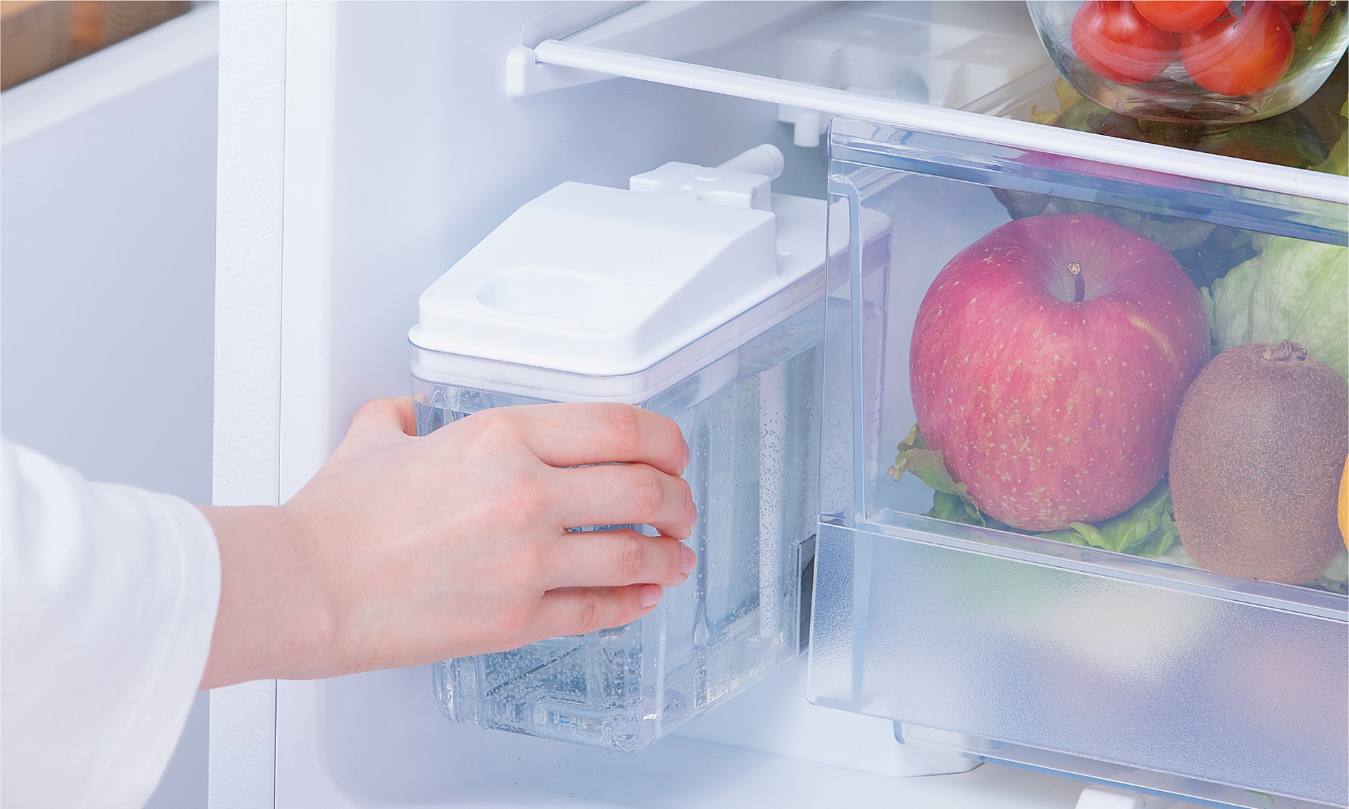 300L未満の容量帯では数少ない自動製氷機能を搭載しており、冷蔵室内の給水タンクに水を入れてセットしておくだけで、貯氷スペースに氷がストックされていきます。給水タンクに水を入れておけば氷がない状態を防げるので、すぐに氷を使いたい時などに便利です。