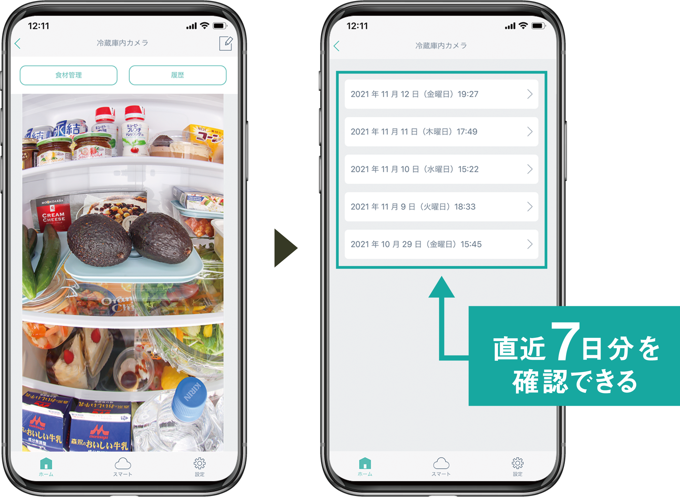 1. 冷蔵室内の食材をスマホで確認できる