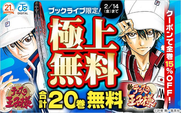 『テニスの王子様』『新テニスの王子様』(許斐剛/集英社)各1~10巻を期間限定で無料配信いたします。さらにシリーズ全巻に使用できる15%OFFクーポンもご用意しました。テニス漫画の金字塔として絶大な人気を誇る『テニスの王子様』シリーズを存分にお楽しみください。