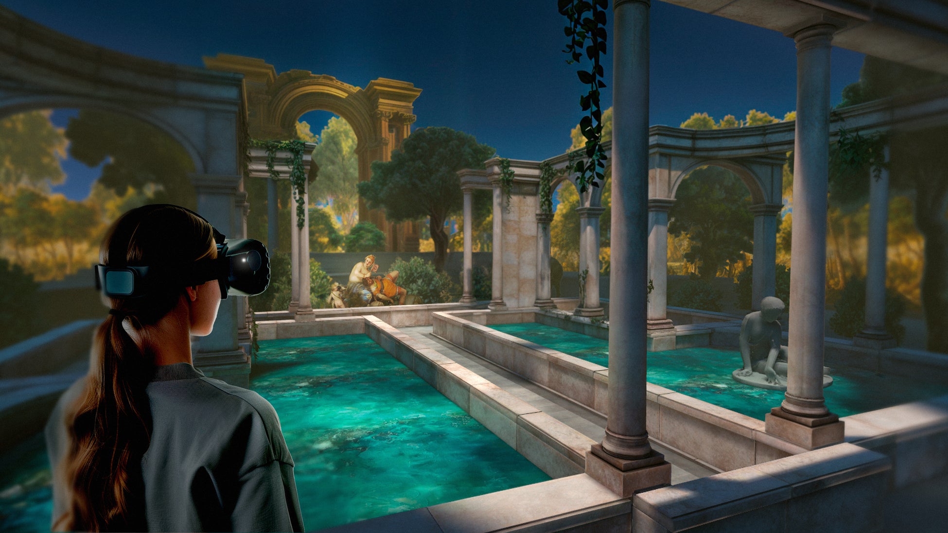 来場者がVRヘッドセットを装着し、名画の細部を拡大しながら自由に鑑賞できるだけでなく、その歴史的背景についても深く理解できるよう設計されています。まるで名画の世界に入り込み、登場人物と対話するような体験が可能です。