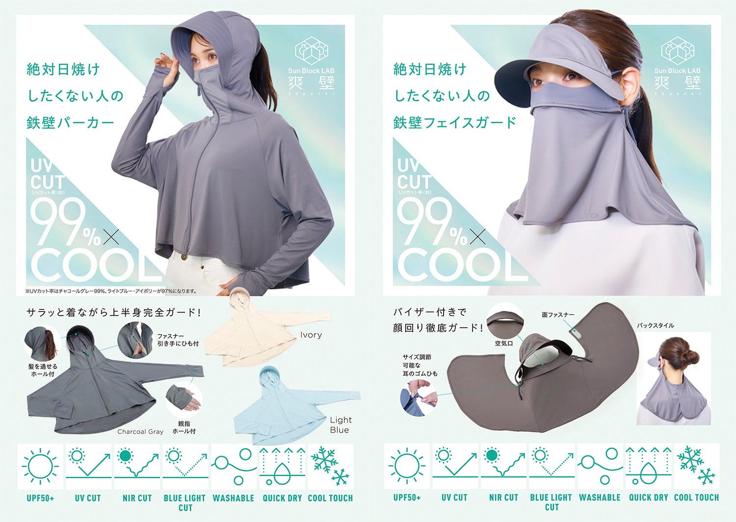 株式会社コジット(本社:大阪府大阪市、代表取締役:久保慎一郎)は、紫外線対策はもちろん、ひんやり感と軽い着心地にこだわった、夏のためのUVケアアイテム「サンブロックラボ 爽壁フェイスガードUVパーカー」「サンブロックラボ 爽壁PlusフェイスガードUVパーカー」から新色と、「サンブロックラボ 爽壁 バイザー付きフェイスカバー」を2026年3月2日(月)より全国発売します。