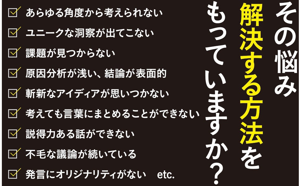 どんな業界、職種でも使える「思考技術・情報収集・行動法」を集中的に学べるように構成。あらゆるシーンでもう困らない!