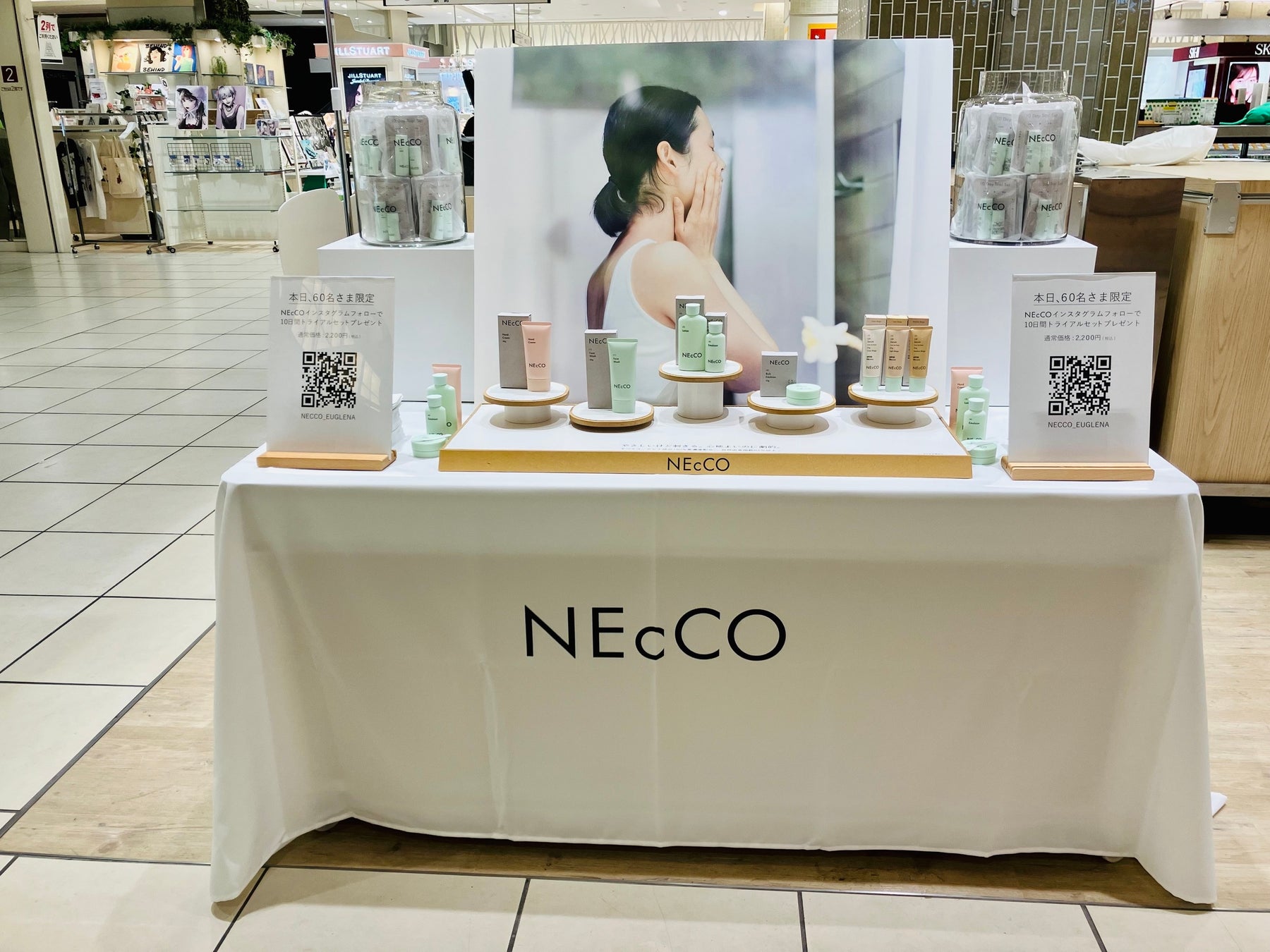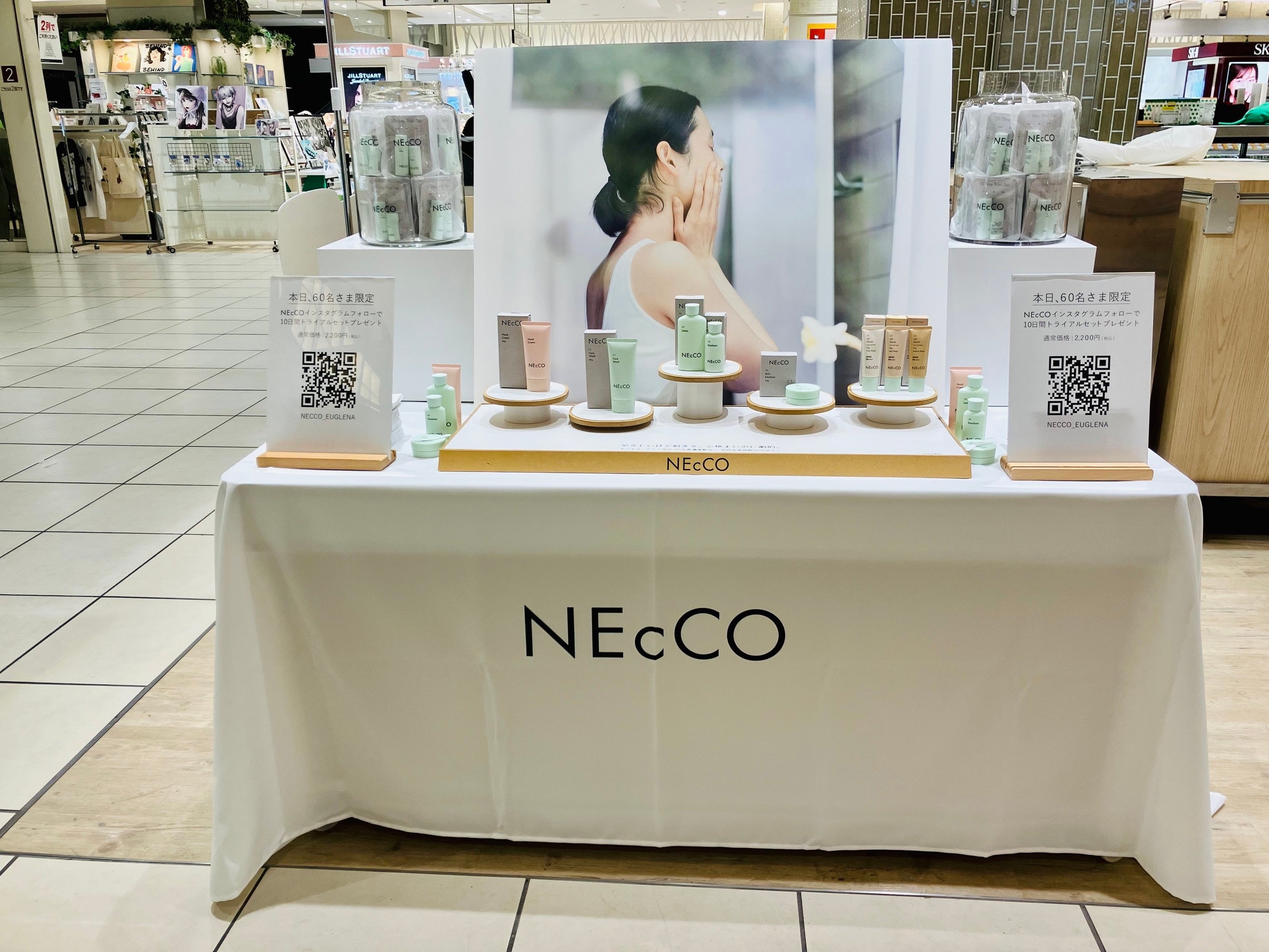 開催期間中、北千住マルイの当ポップアップショップ店頭にてNEcCO公式インスタグラムをフォローしていただいた方に、数量限定でNEcCOトライアルセット(ローション・エマルジョン)をプレゼントいたします。