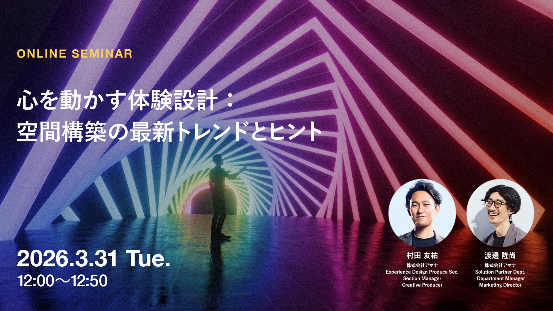コミュニケーション変革をクリエイティブで実現する株式会社アマナ(本社:東京都品川区、代表取締役社長:金子剛章、以下「アマナ」)は、2026年3月31日(火)、『心を動かす体験設計:空間構築の最新トレンドとヒント』をテーマにウェビナーを開催します。