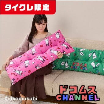 ドコムスさんのイラストが全面に描かれている、約90㎝のロングクッション。