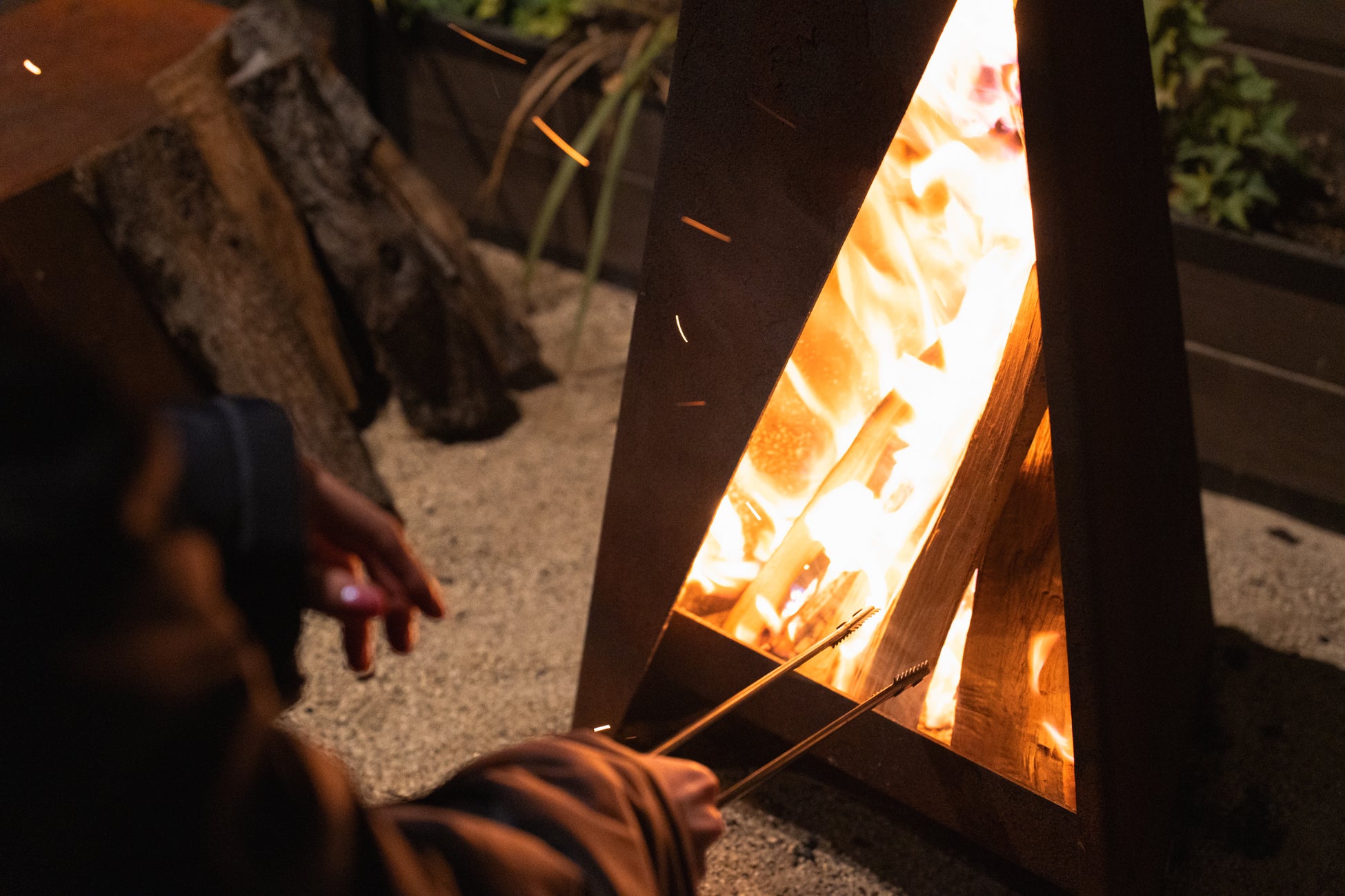 客室のテラスには焚き火台を用意しており、自然の炎を眺めながら焚き火を楽しむことが可能です。