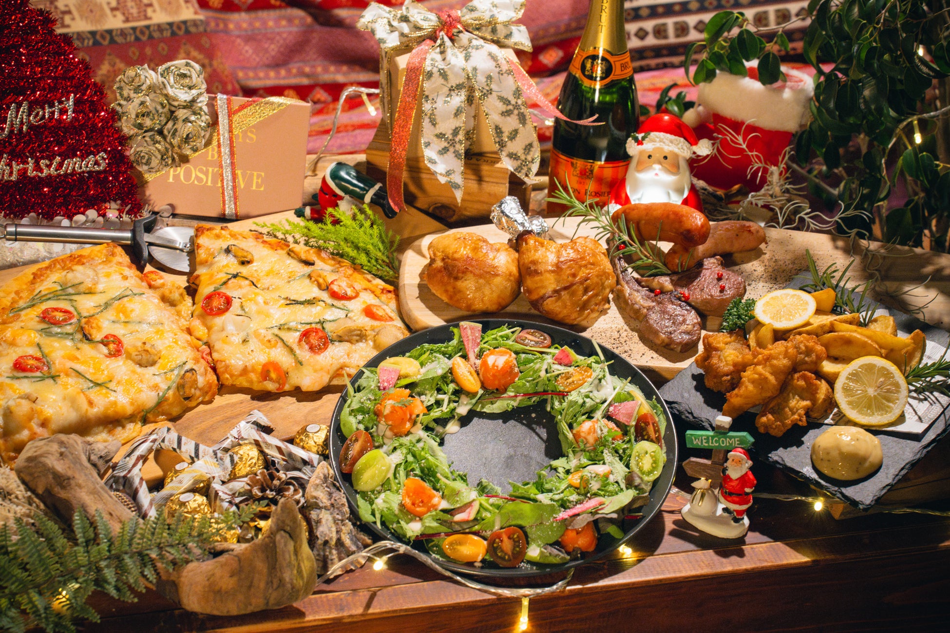 当日は単品メニューにクリスマスチキン・リースサラダ・フィッシュアンドチップスなどの期間限定メニューも販売。