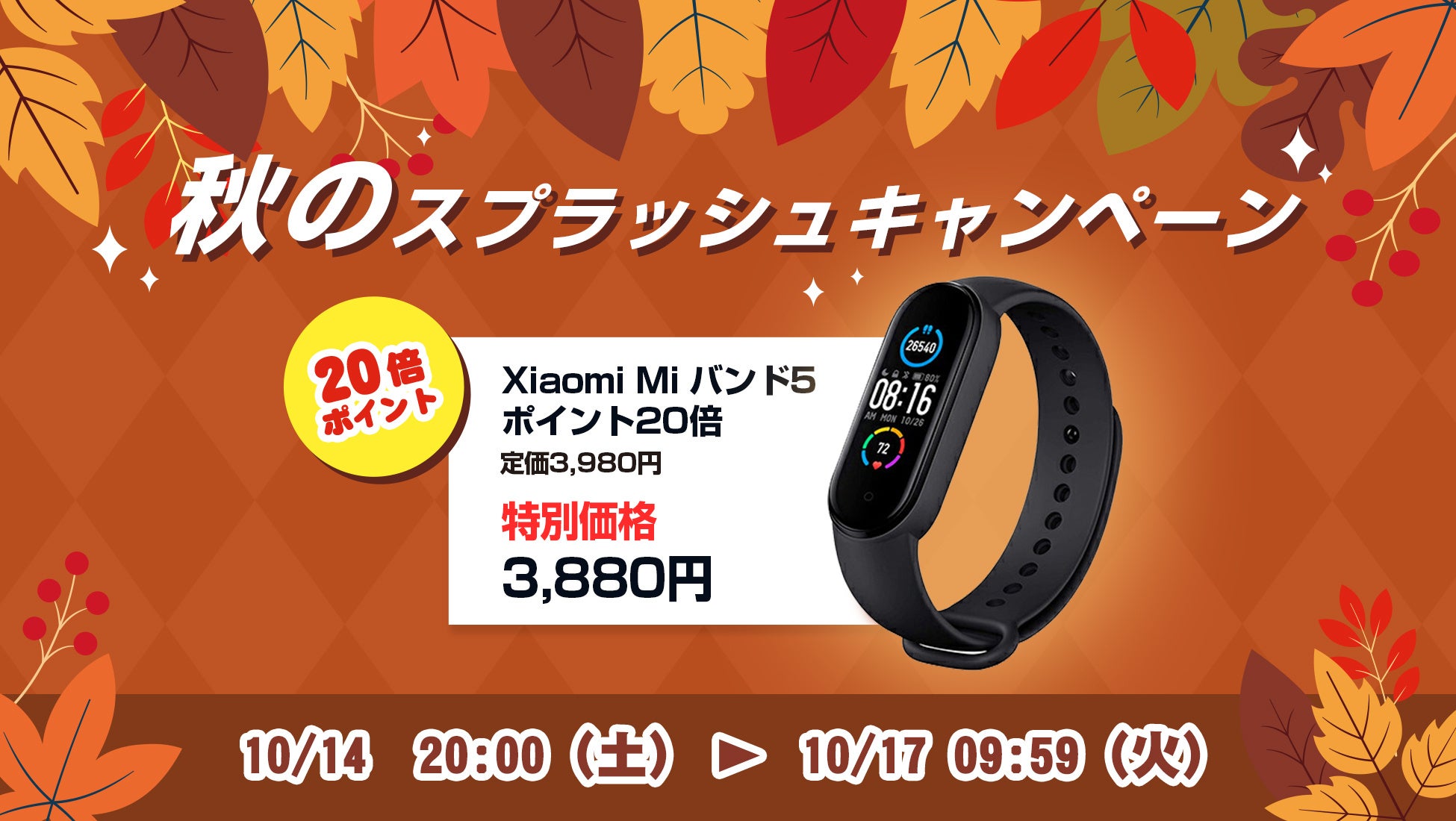 楽天市場「Show !t」は10月14日(土)20時から、ポイント20倍プレゼント!シャオミのMiバンド5を通常価格3,980円(税込)のところ3,880円(税込)の特別セール価格で販売決定。また、10月14日(土)20:00~10月17日(火)09:59まで開催される、楽天お買い物マラソンに参加し、ポイント10倍プレゼント(一部商品を除く)を実施します。この機会にシャオミのスマートバンドMiバンド5でポイントをザクザク貯めましょう。