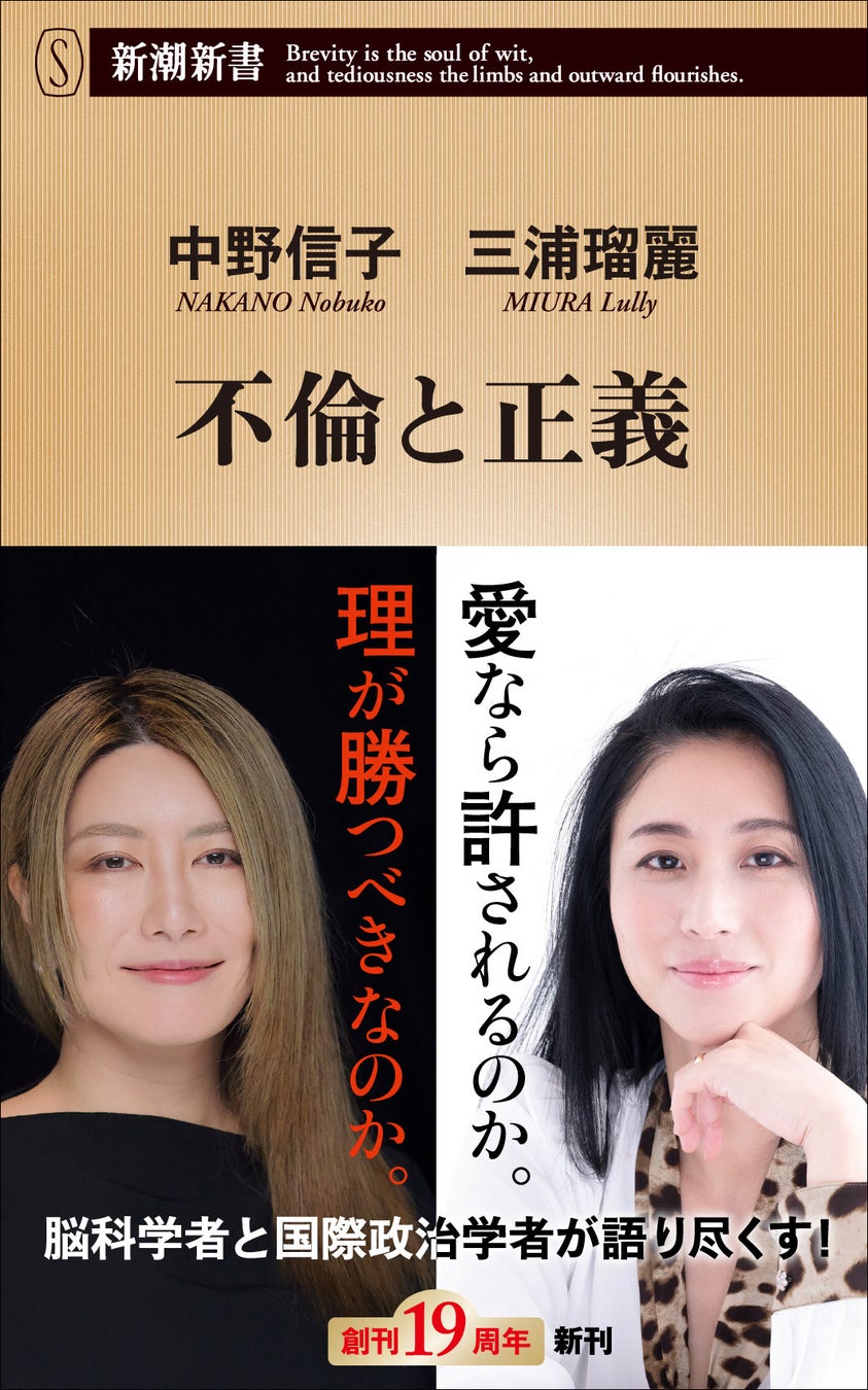 脳科学者・中野信子と国際政治学者・三浦瑠麗が「不倫」について語り尽くす、注目の対談本『不倫と正義』を4月18日、新潮社より刊行いたします。