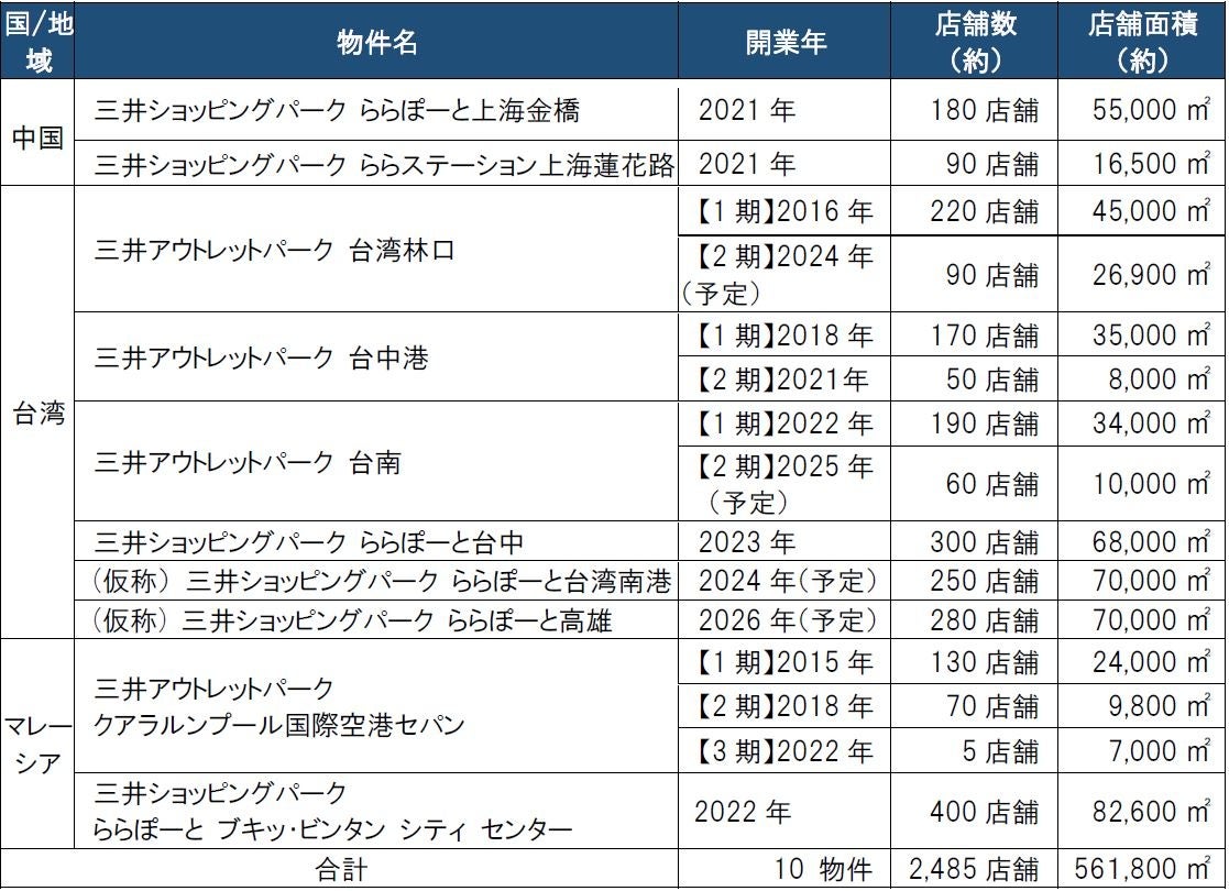 三井不動産が海外で展開する商業施設(2023年6月現在)