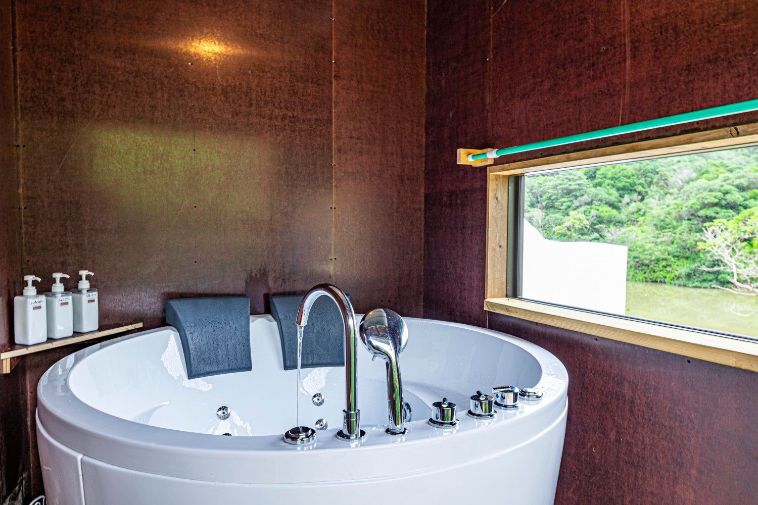 プライベートジャグジー完備、トイレ付、焚火ブース、ハンモック