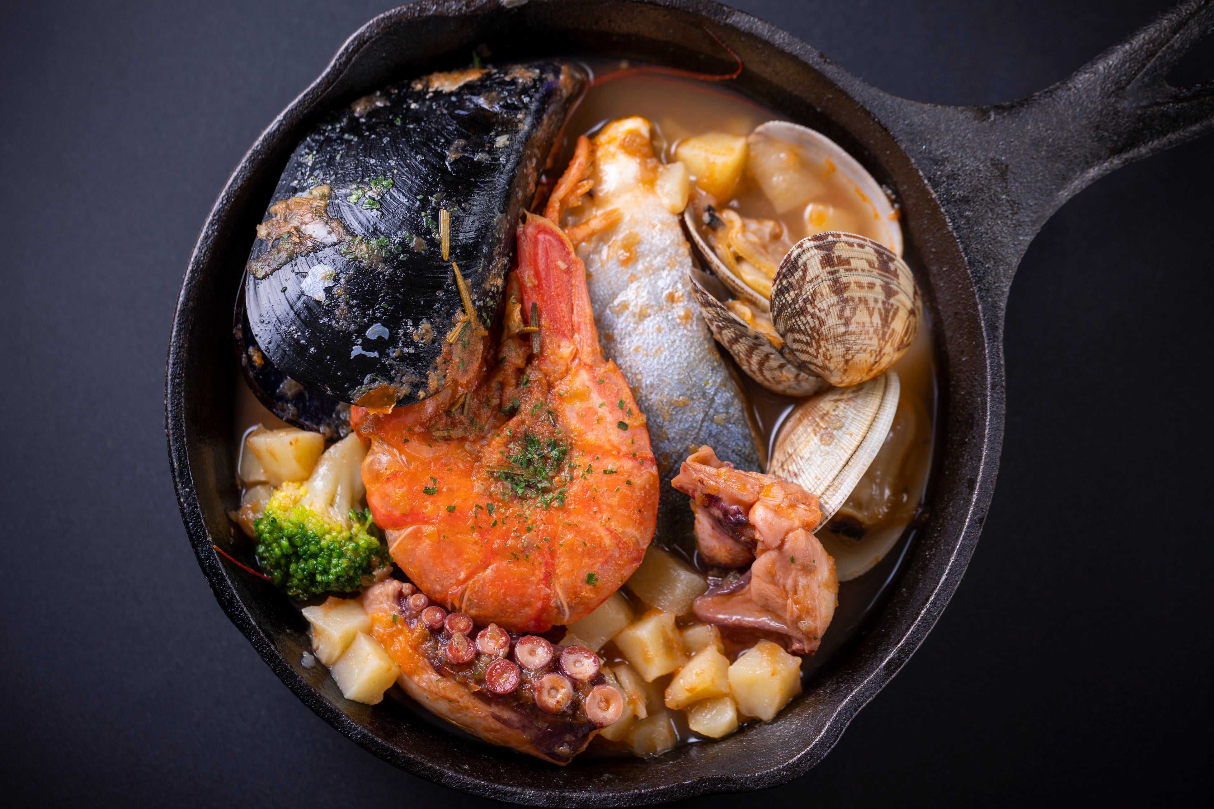 海鮮とキノコのアヒージョ~トースト付き~