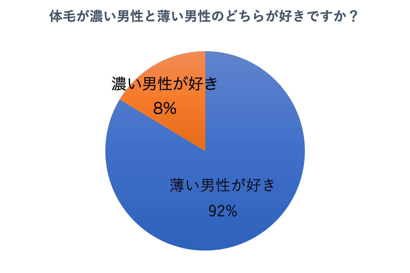 体毛が濃い男性が好きという女性はなんと1割未満しかいませんでした!