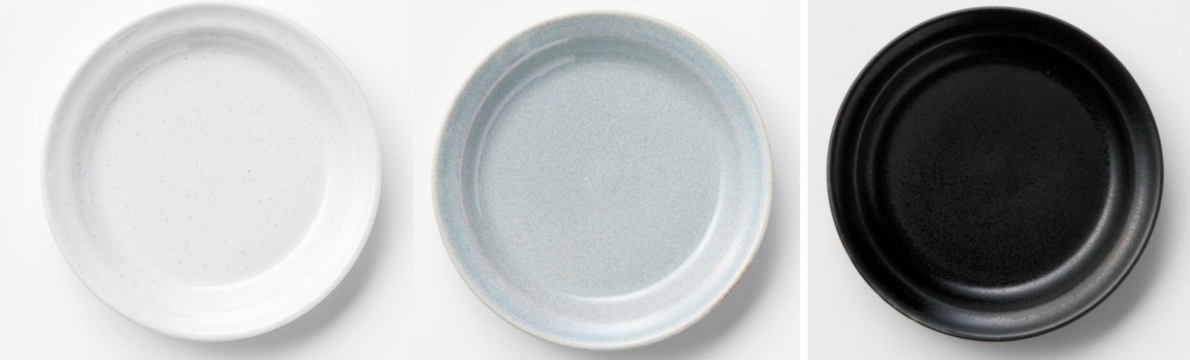 料理が映えて日常使いしやすい、ホワイト・グレー・ブラックの3色展開。