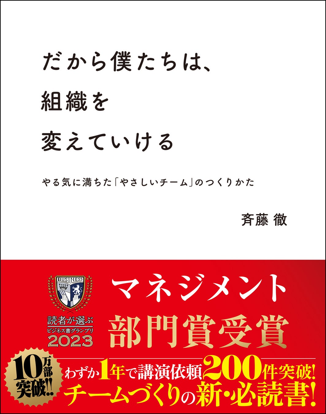 本書は2021年11月の発売直後から多くのビジネスパーソンの支持を集めて、発売1年で10万部を突破。2022年12月にはシリーズ第2弾書籍『だから僕たちは、組織を変えていける ワークブック』を刊行し、今年2月には、ビジネスパーソンが今読むべき本を選出する「読者が選ぶビジネス書グランプリ2023」にてマネジメント部門賞を受賞しました。シリーズ累計では15万部に達し、著者は発売開始から2年足らずで数百件の講演依頼を受けるなど、いまも勢いは止まりません。
