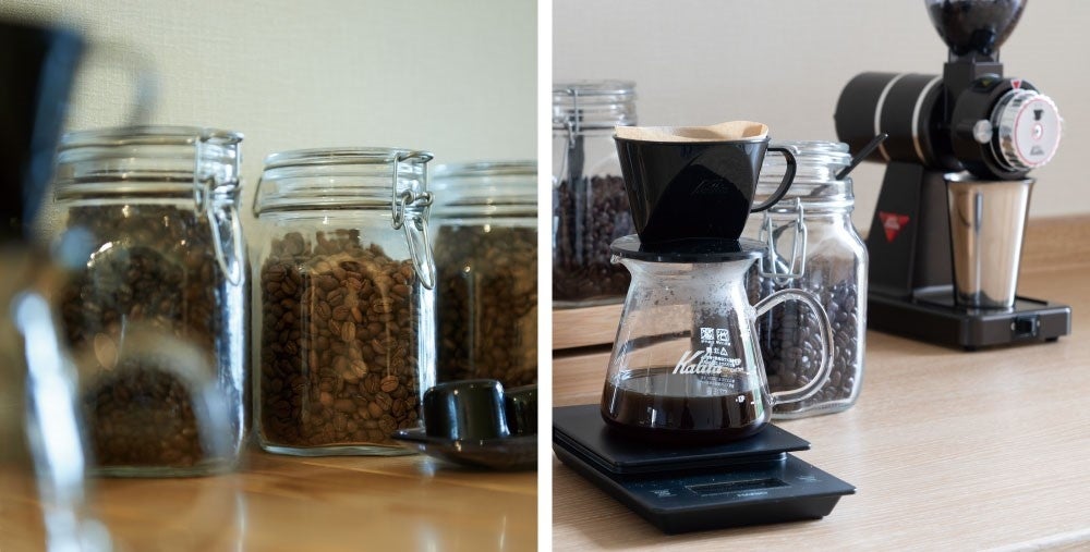 ポテル館内・3Fあわいの間にあるCOFFEE SPACEでは、COFFEE BASE Co., Ltd.の牧野広志さんより監修いただいた宿泊者のみなさまが自ら、豆を挽いてハンドドリップ体験ができるスペースがあり、イベント当日はそのスペースで牧野さんより、直接ハンドドリップが学べます。それだけでなく、イベントでは気兼ねなく牧野さんとご縁をつないでいただけるように、ふらりと立ちより談話も楽しんでいただけます。ぜひ、この機会にポテルでしか味わえない「something luckyな体験」をご体感ください。