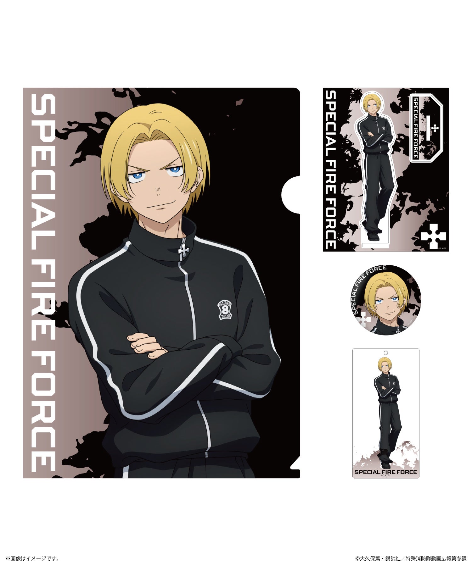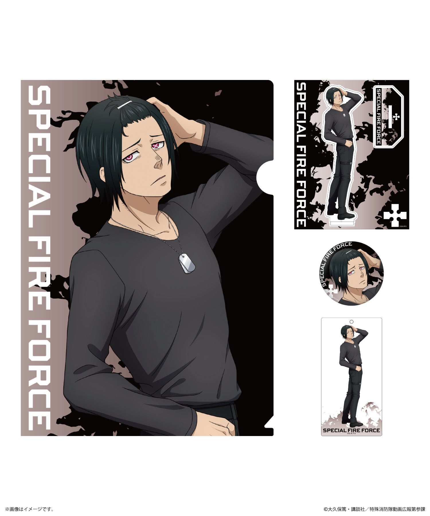 TVアニメ『炎炎ノ消防隊 参ノ章』BLACK COLLECTION by ZOZOTOWN グッズセット(6種展開):3,520円(税込)※画像は「シンラ」ver.