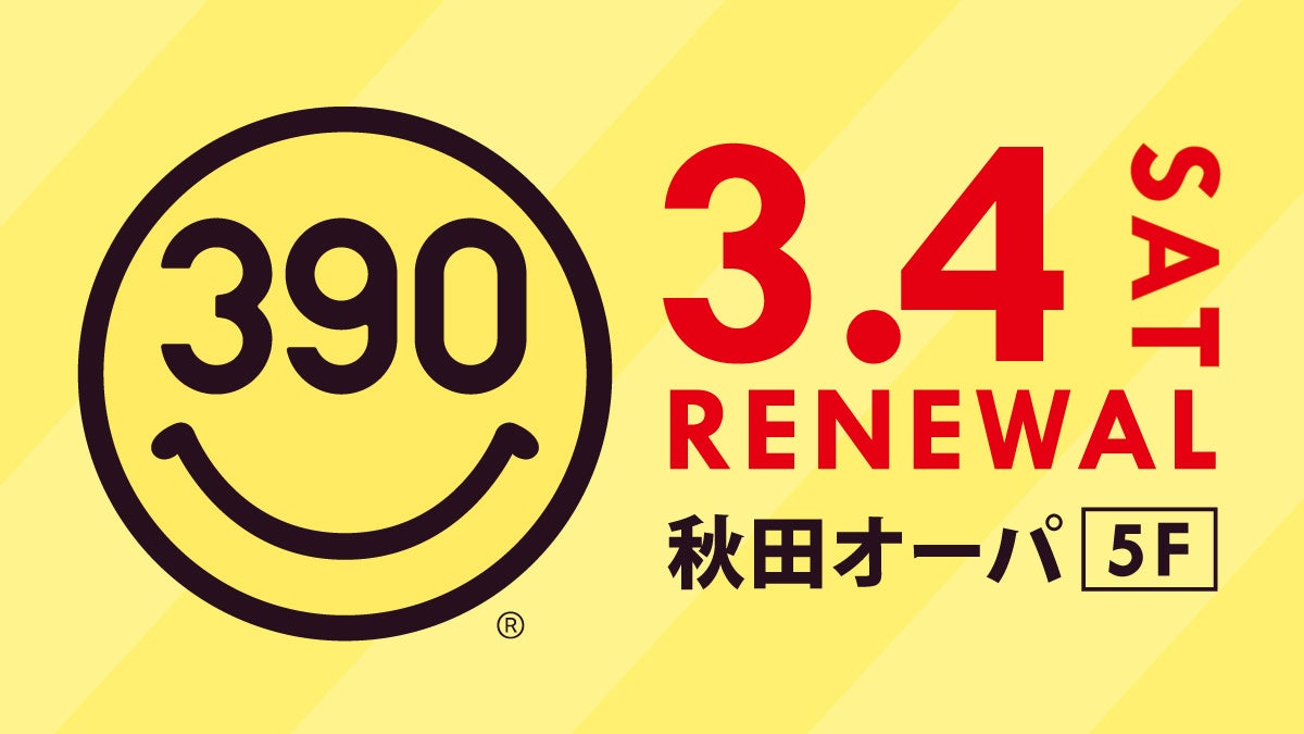 エルソニック株式会社(本社:大阪府吹田市)は、全国で約100店舗を展開する390円ショップ『サンキューマート秋田オーパ店』を2023年3月4日(土)にリニューアルオープン致します。