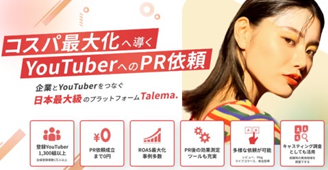 Talema.(タレマ)は、【チャンネル登録者数が1万人以上のYouTuber】と【動画で商品サービスを宣伝したい企業】を直接つなぐマッチングプラットフォームです。