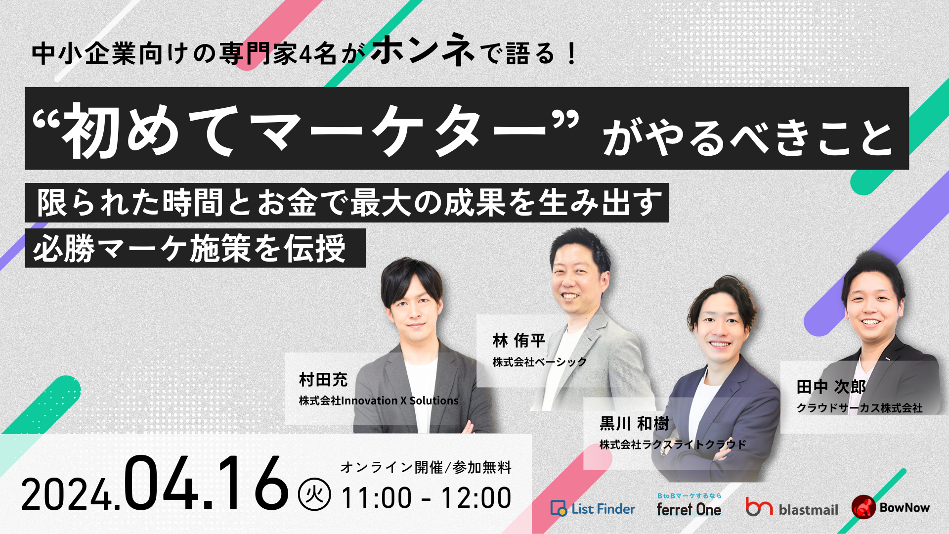 ベーシック、4/16(火)11時よりクラウドサーカス社主催の「”初めてマーケター”がやるべきこと ~限られた時間とお金で最大の成果を生み出す必勝マーケ施策を伝授~」に登壇
