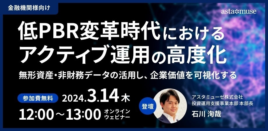 金融機関向け無料セミナー「低PBR変革時代におけるアクティブ運用の高度化 ~無形資産・非財務データの活用し、企業価値を可視化する~」を3月に再開催