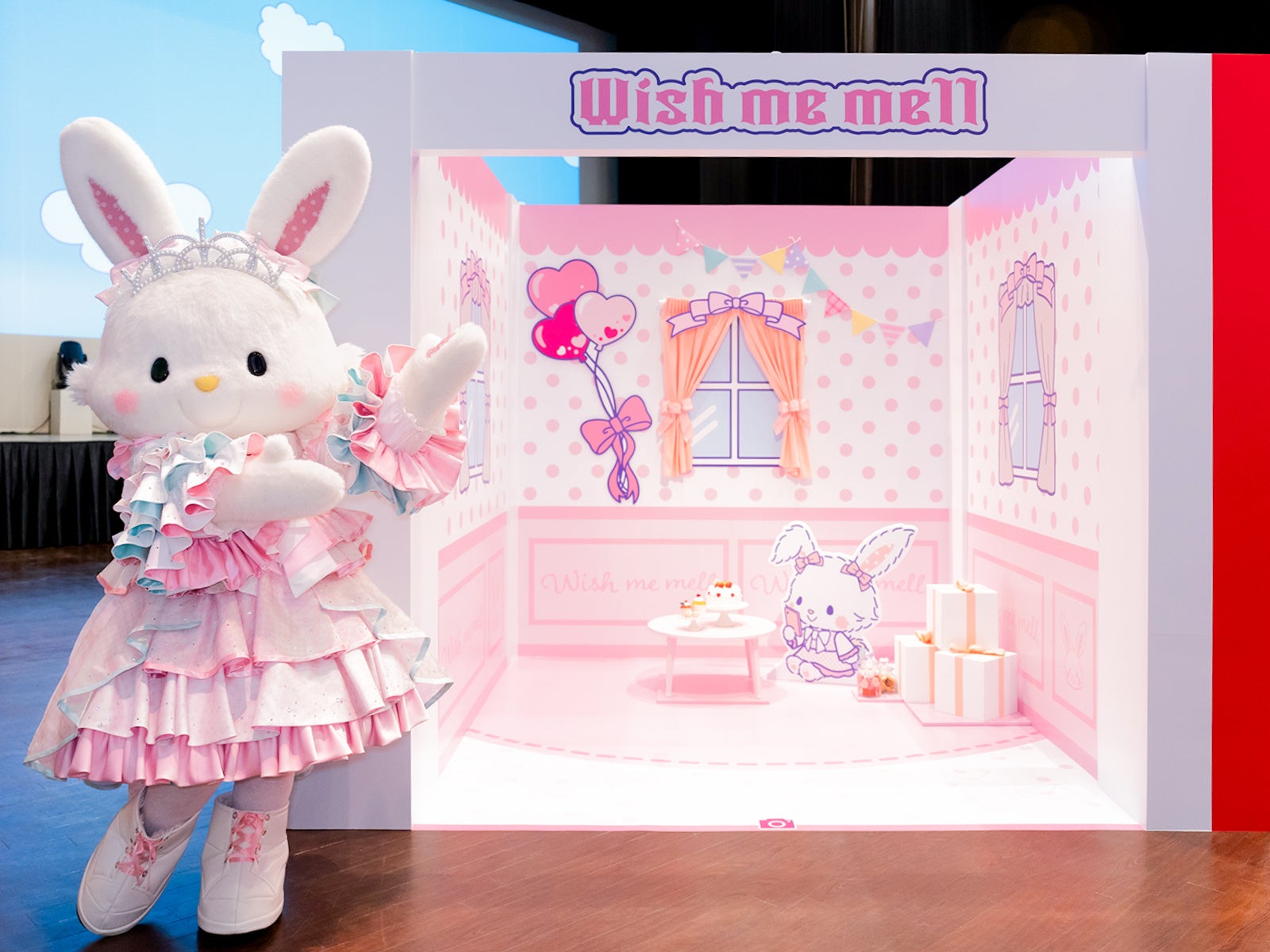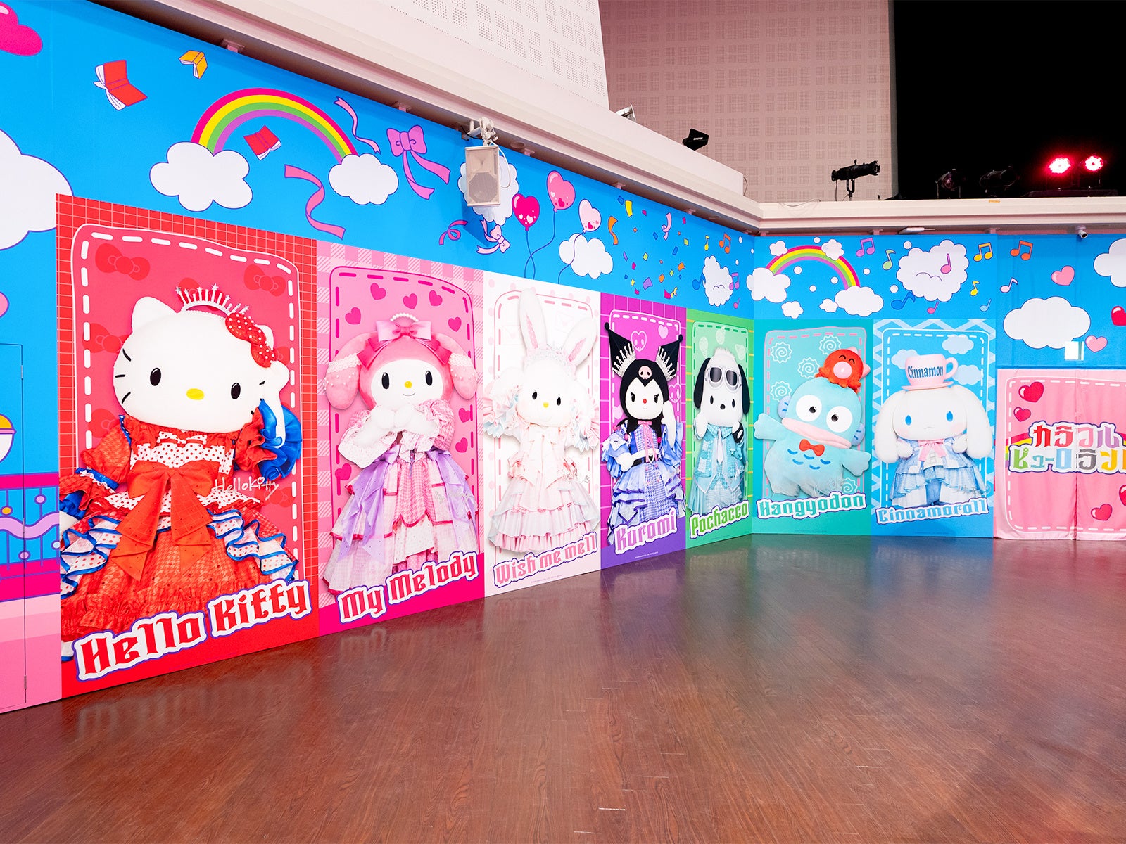 最大の見どころは、エンターテイメントホールに期間限定で登場する「カラフルピューロランドハウス」です。キャラクターの世界観に没入できる「推し色キャラルーム」や「キラキラ★クロミルーム」、さらに歌い手Adoとのコラボレーションによって生まれたアドローザトルマリィのスペシャルルームなどが展開され、まるでキャラクターと一緒に過ごしているかのような写真を撮影できます。初日を訪れたゲストの中には「このキャラクターと写真が撮りたい!」と駆け寄るお子さまや、「かわいい写真が撮れて嬉しい」とお友達と自撮りをして楽しむ様子などが見られました。メディアお披露目会には、赤が印象的なコスチュームのハローキティ、黒をまとったバッドばつ丸、白を基調にしたコスチュームのウィッシュミーメルが特別に登場し、会場を華やかな雰囲気に包みました。