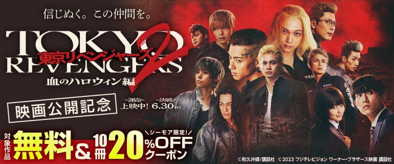 2021年に公開し劇場用実写映画No.1(*1)の大ヒットを記録した、映画「東京リベンジャーズ」の2年ぶりとなる前後編2部作「東京リベンジャーズ2 血のハロウィン編 -運命-」、「東京リベンジャーズ2 血のハロウィン編 -決戦-」がそれぞれ4月21日(金)、6月30日(金)に公開されることが決定いたしました。コミックシーモアでは、前編である「-運命-」の公開を記念し、「東京卍リベンジャーズ」関連作品をお得に楽しめるコミックシーモア限定キャンペーンを実施いたします。完結してもなお、根強い人気を誇る本作を、映画とともにお得にお楽しみいただけるチャンスです。