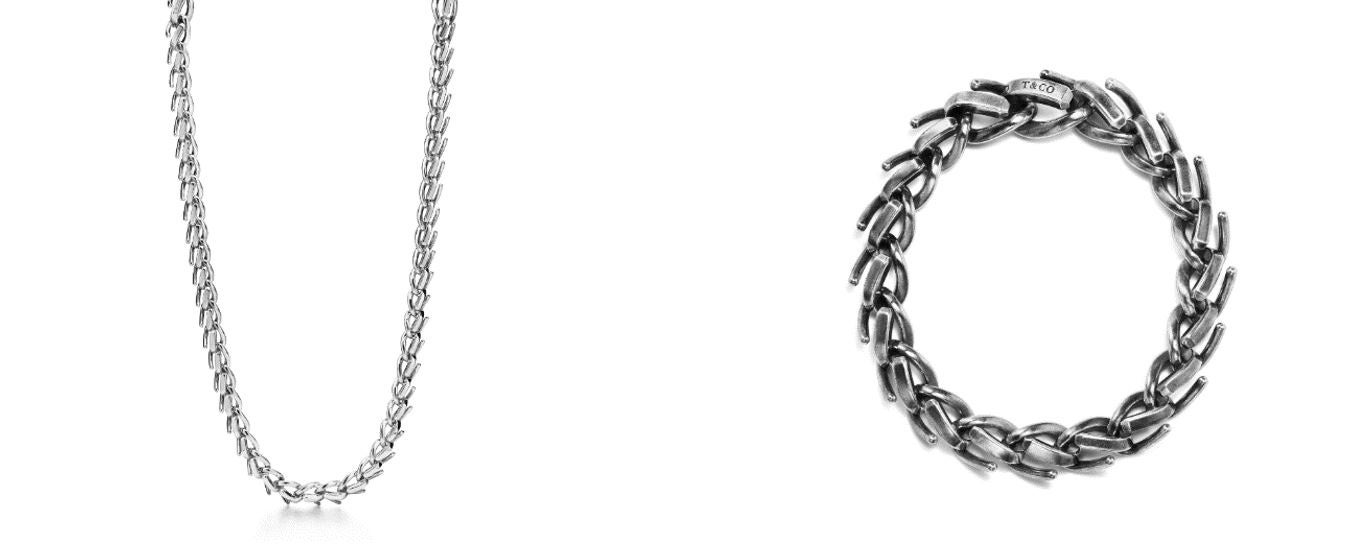 「ティファニー フォージ」コレクションのアイテムは、クラスプ(留め具)を隠した大胆なデザインを施し、オープンリンク モチーフの多様な表現を採り入れています。種類はスターリングシルバーのハイポリッシュ、またはブラック仕上げの2種類。ネックレス、ブレスレット、リング、ピアスに細め、太めのチェーンを採用し、スケールと立体感で遊び心を演出します。