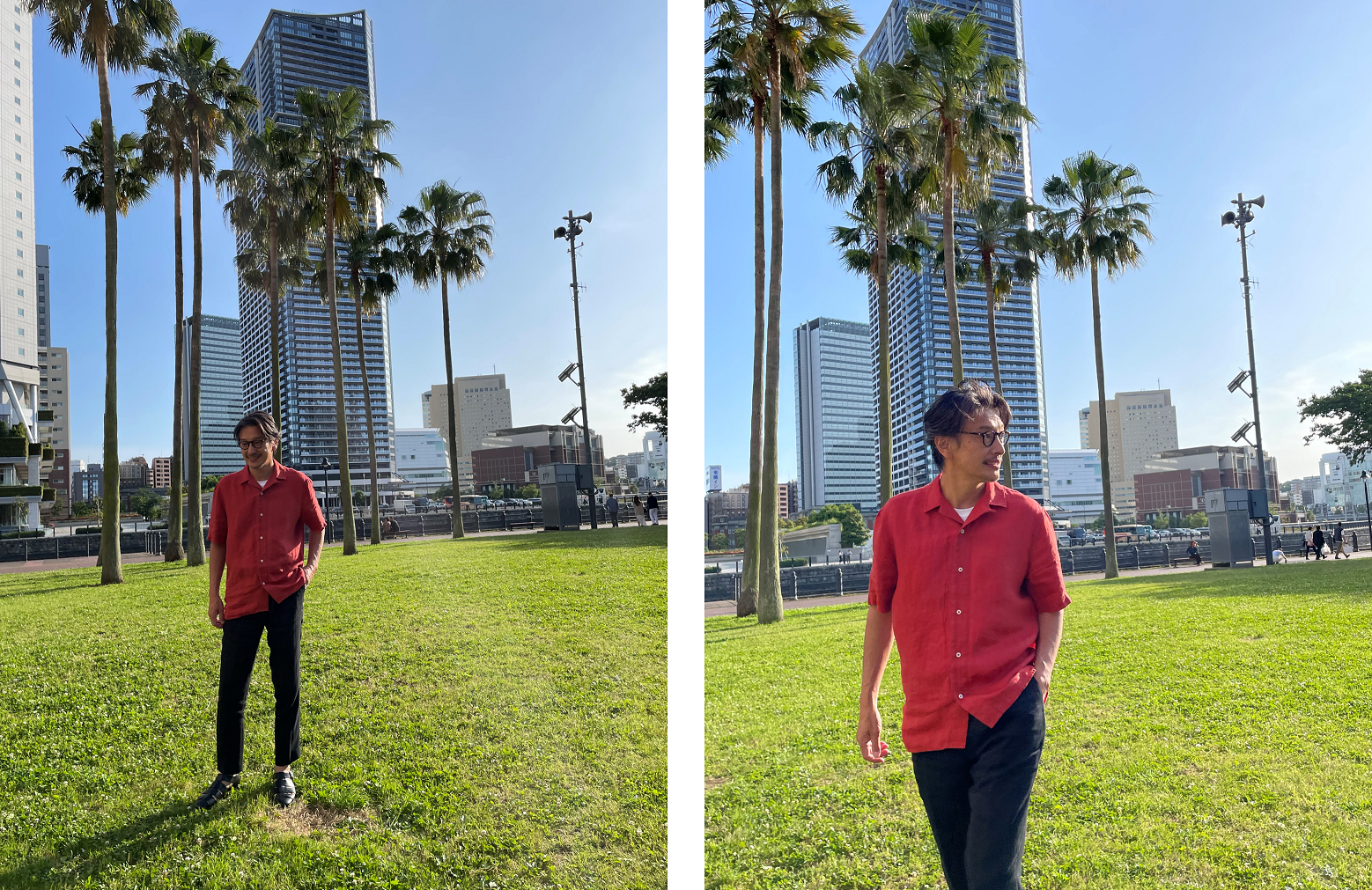 鮮やかなカラーが魅力の通気性に優れたリネンのシャツに、表情豊かなヘリンボーン柄のリネンパンツを合わせたエフォートレススタイル。暑い夏の時期も涼しい着心地を保つ上質なリネン素材で夏らしい爽やかなコーディネートに。