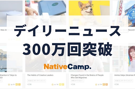 ネイティブスピーカーと回数無制限のオンライン英会話サービス「ネイティブキャンプ英会話」を展開する株式会社ネイティブキャンプ(東京都渋谷区 代表取締役:谷川国洋)は、最新の時事ニュースを通して英語を学べる人気教材「デイリーニュース」のレッスン数が300万回を突破したことをお知らせいたします。