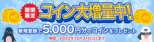 期間中に新規会員登録をしていただくと、通常1,000円分のところ、今なら5,000円分の入会特典コインをプレゼントいたします。このお得な機会にぜひネイティブキャンプをご利用ください。
