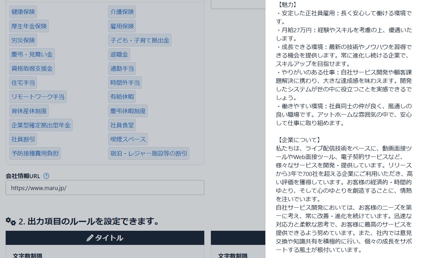 企業理念等を求人内容に盛り込むことが出来、これまで以上に人が作成したような文章生成を行えるようになりました。