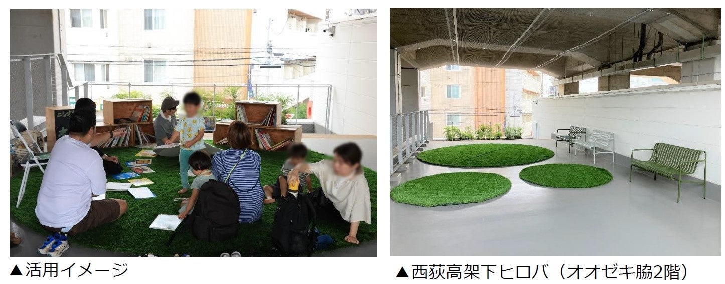 2024年7月より、西荻高架下オオゼキ西荻窪店脇2階に、芝生やベンチを設けた地域のヒロバを開放しています。既に街中の憩いの場として、地域の方々や訪れた皆様に心地よい時間を提供しています。