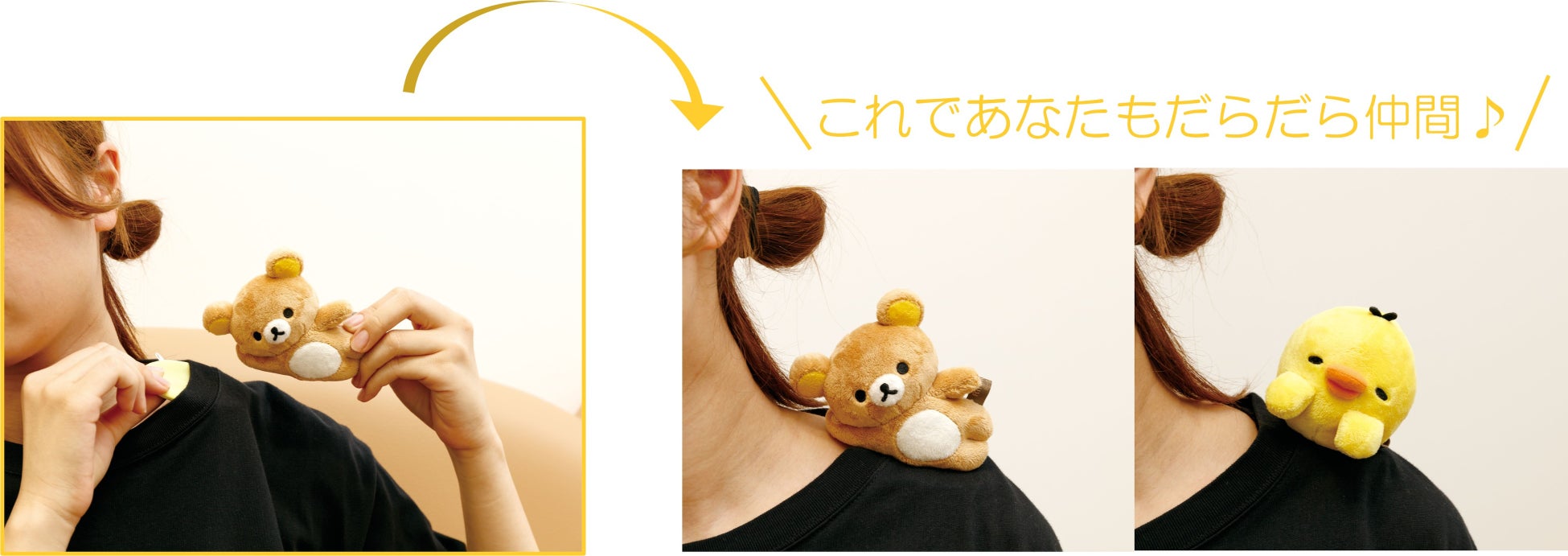・くっつく用いっしょにごゆるりぬいぐるみ(各2,530円※税込):マグネット入り・金属製プレート付