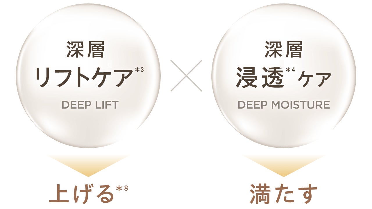 エイジングケア*¹に重要な深層リフトケア*³と深層浸透*⁴ケアの両立を実現。深層まで温めながらリフトケア*³を行い、うるおして満たす「次世代D×LIFT技術」を搭載しました。