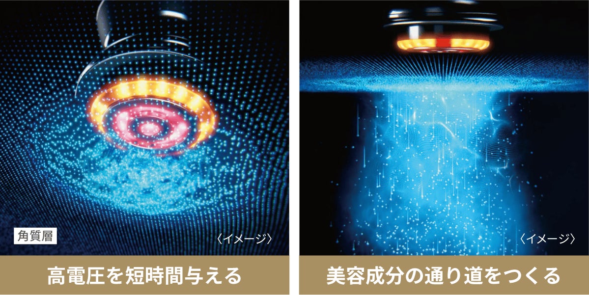 角層のすみずみまでうるおいで満たす独自の深層浸透*⁴テクノロジーは、イオン導入よりも浸透効率が圧倒的に高い技術であるDYHP(ダイナミックハイパーパルス)。肌深部*⁴のすみずみにまで美容成分を届け、透明感*⁶とうるおいで満ち溢れる肌へ導きます。さらに美白成分*⁷の浸透効率を高める導入波形も搭載。
