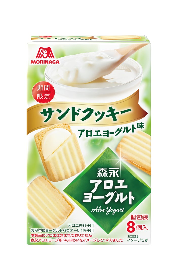 ・「森永アロエヨーグルト」の味わいを再現したクリームサンドクッキー。