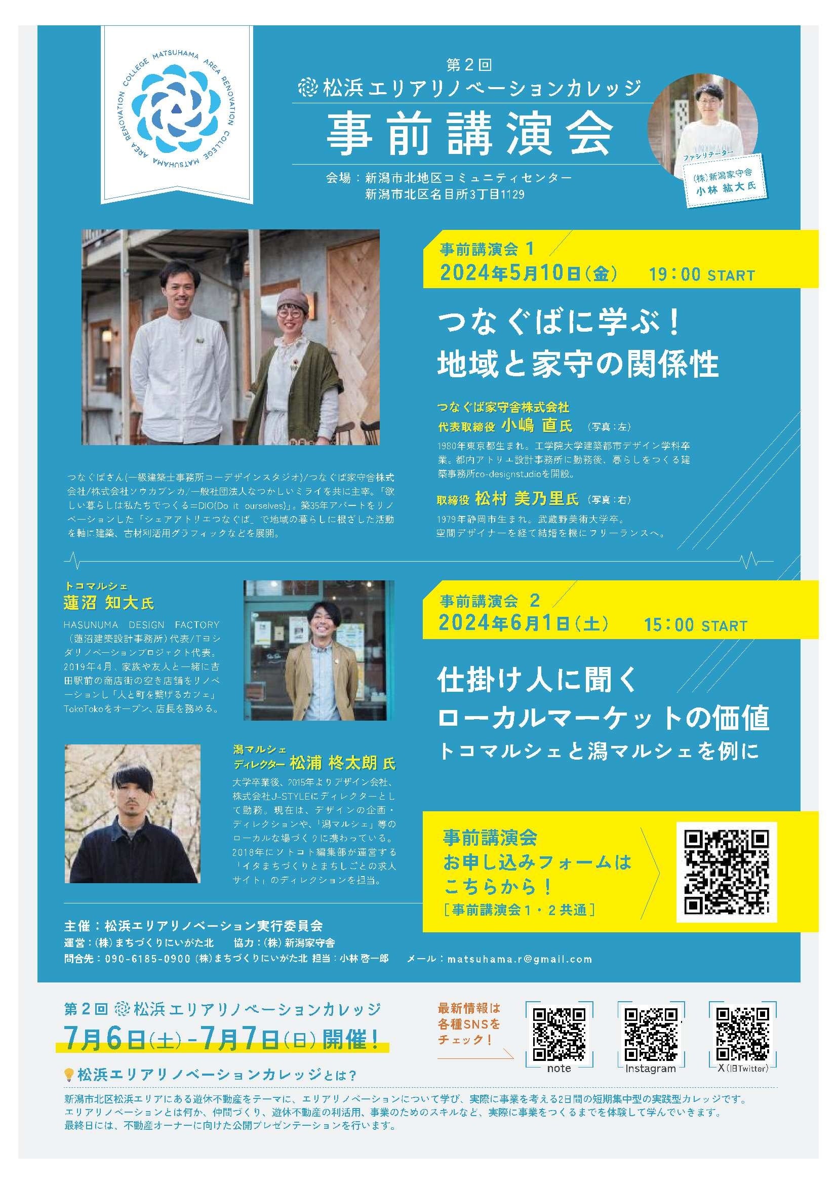 松浜エリアリノベーションカレッジ事前講演会参加者募集のご案内(新潟市北区産業振興課)