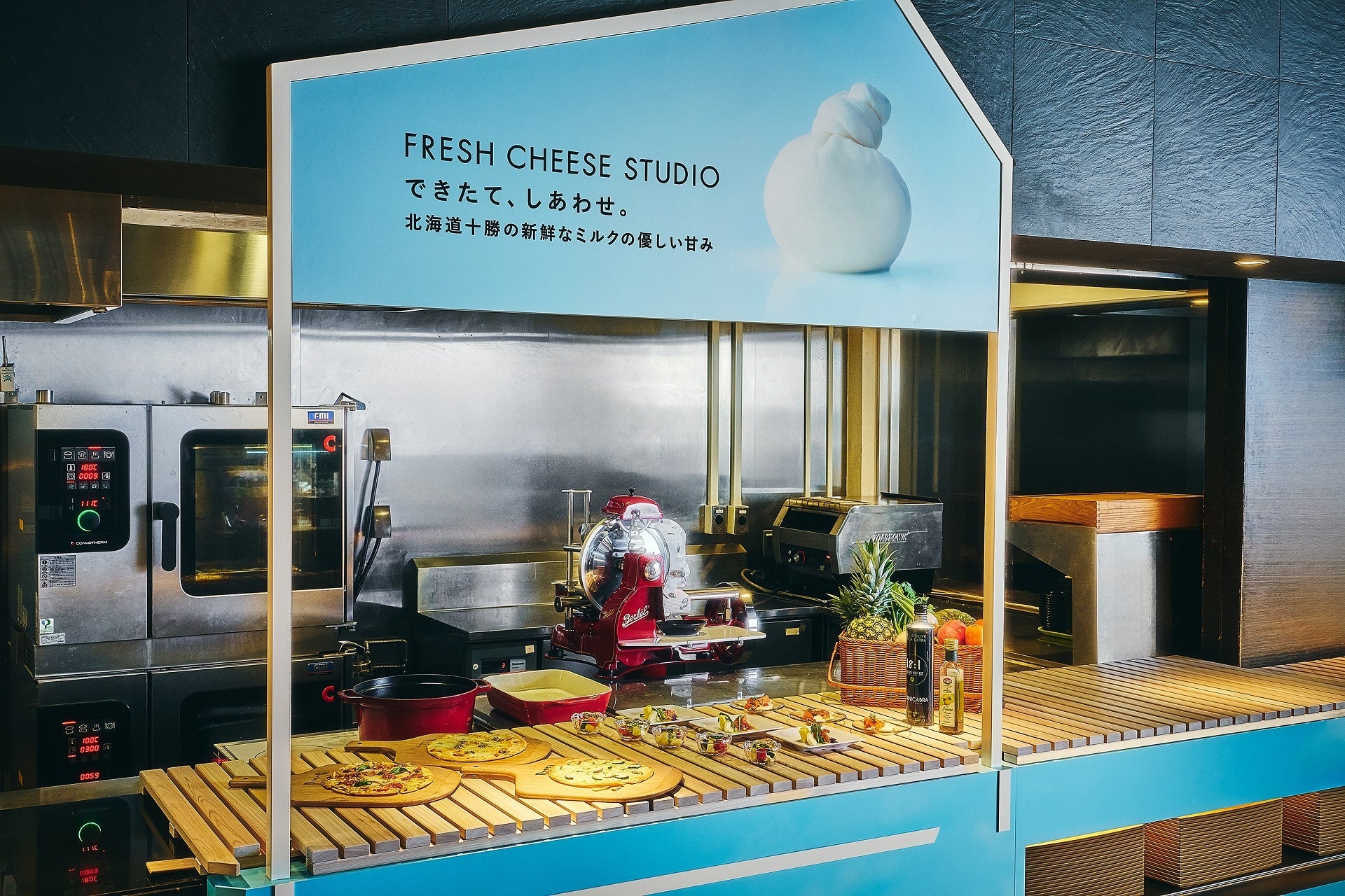 約400席の広々とした空間で、ライブキッチンでのパフォーマンスをお楽しみいただける大人の美食空間『LUXE DINING HAPUNA』と、「できたて、しあわせ。」のメッセージのもとに、国産乳製品の魅力を伝えるブランド『FRESH CHEESE STUDIO』、両社の想いが融合した、ここでしか出会えない新たな美食体験をご用意いたしました。本コラボレーションでは、当ホテルの製パンシェフが仕込んだピザ生地を目の前で仕上げる焼きたてのクアトロフォルマッジや、その場でカッティングした生ハムに、独自のフレッシュチル製法によりできたてのモッツァレラチーズが手軽に作れる新素材である「北海道十勝the CURD」を組み合わせ、「できたて」のおいしさを展開してまいります。
