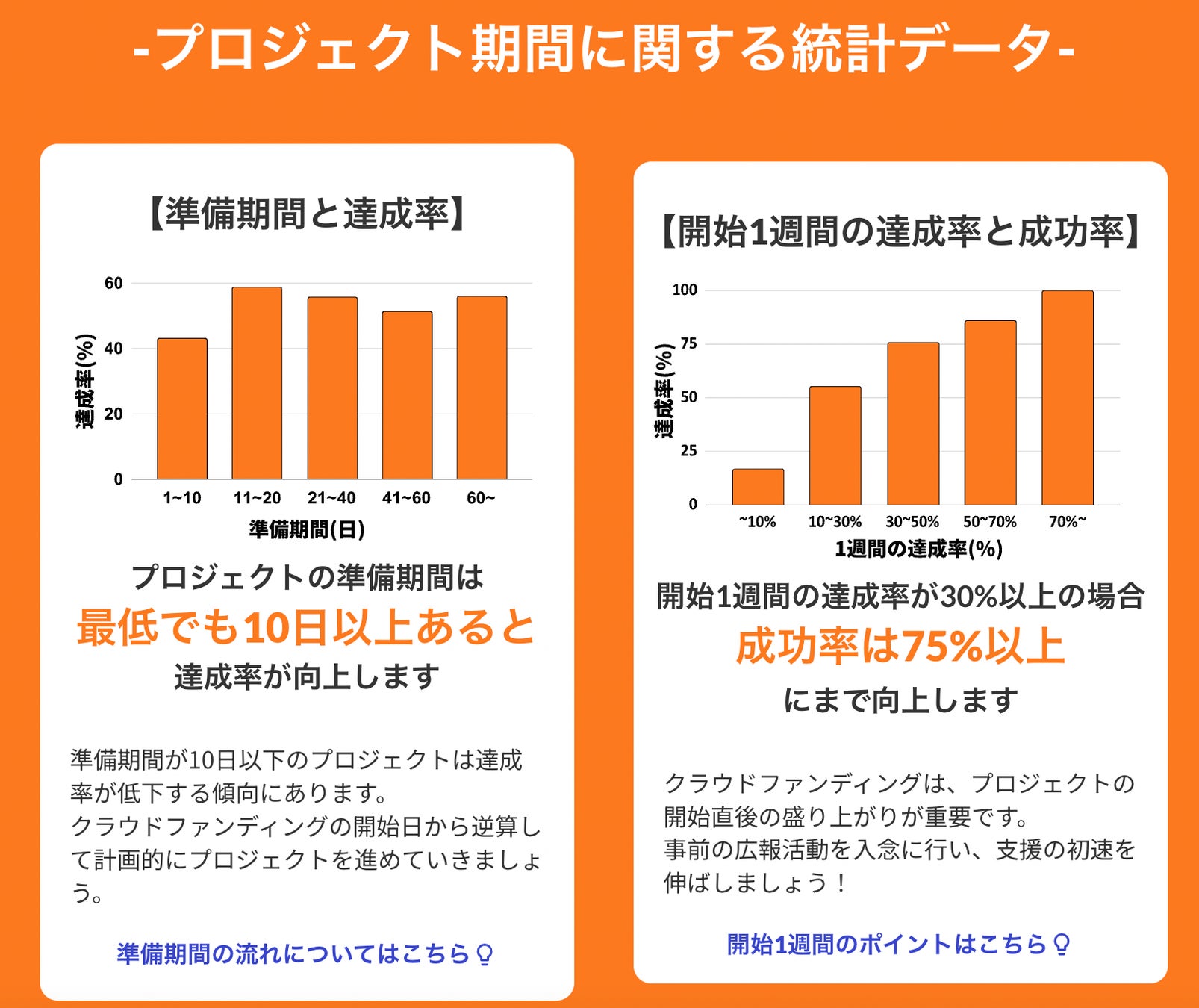 目標金額、リターン設計、ページの文字量、写真・動画の枚数、プロジェクト実施期間、など、これからクラウドファンディングに挑戦される方がプロジェクトを立ち上げるの際の参考となる情報提供だけでなく、プロジェクト実施中の方も、支援を集めやすいプロジェクトページ作りの手がかりが得られる場所となっております。