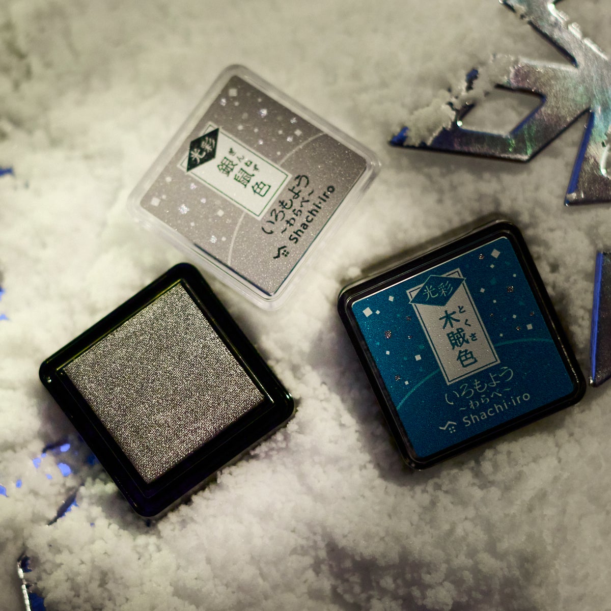 日本の伝統色に煌めきをほんのり足したスタンプパッドです。その中からホリデーシーズンにぴったりの3色を選びました。盤面の角を使って細かい色分けを行うことができます。お気に入りのスタンプを押すと、まるで冬の澄んだ空気のような雰囲気が広がります。