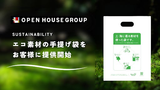 株式会社オープンハウスグループ(本社 東京都千代田区、代表取締役社長 荒井正昭、以下「当社」)のグループ会社である株式会社オープンハウスおよび株式会社オープンハウス・ディベロップメントは2024年1月7日(日)より、関東の全ての営業センター48か所および首都圏のマンションギャラリーなどのマンション販売拠点において、お客様がご自宅にお持ち帰りになる物件に関する資料を入れる袋として、100%バイオマス由来の素材を使った手提げ型の袋(以下「バイオマス手提げ袋」)の提供を開始しました。土や海に戻る環境に優しい素材を使うことで、環境保全への貢献を進めます。