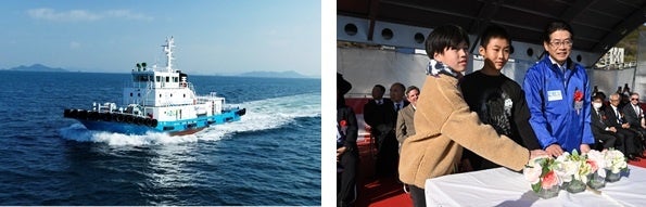 左:水素混焼エンジン搭載タグボート「天歐」(全長:38m)